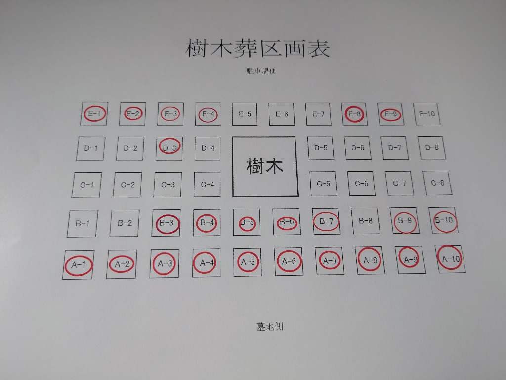 釣月寺の樹木葬は、ペットと一緒に入れます区画図の赤○の個所は成約済みになります先月(3月)は、2件の申し込みがありました見学も随時受付中です釣月寺のラインからお問い合わせ下さい